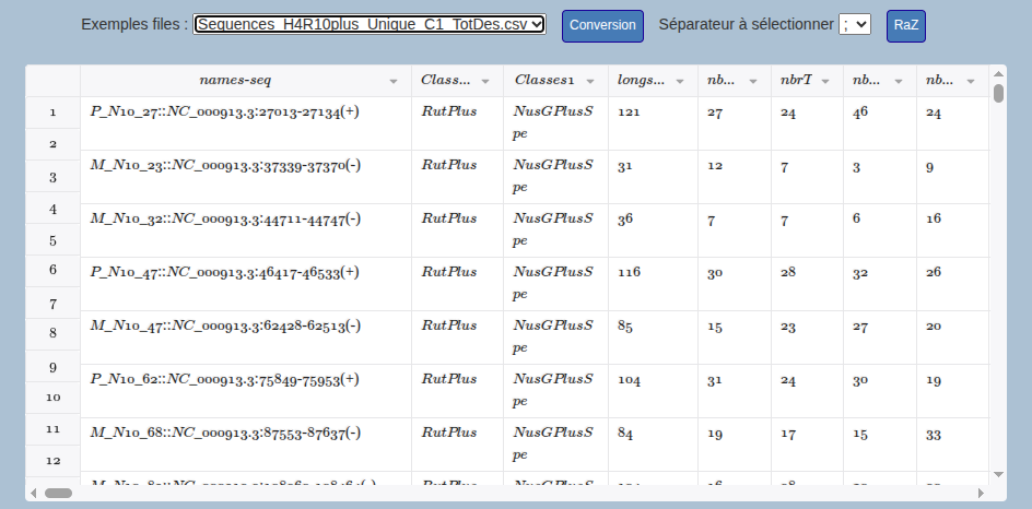 L’objectif dans cette application est de permettre lors du chargement du fichier csv de permettre à l’utilisateur de sélectionner les variables qu’il souhaite charger dans son contexte d’analyse. Les fonctionnalités d’Handsontable permettent à l’utilisateur de visualiser et de sélectionner les colonnes de façon continue ou discontinue pour ensuite les charger dans son contexte.