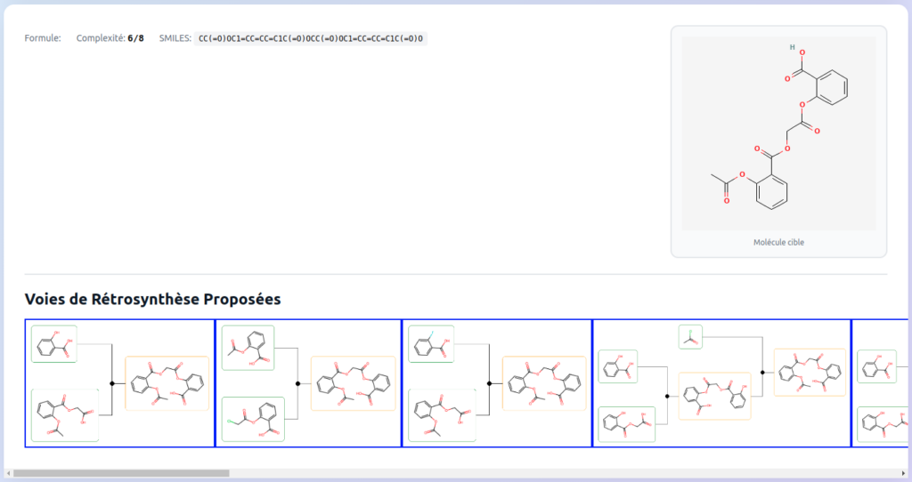 Et l’affichage des résultats après la résolution de la rétrosynthèse